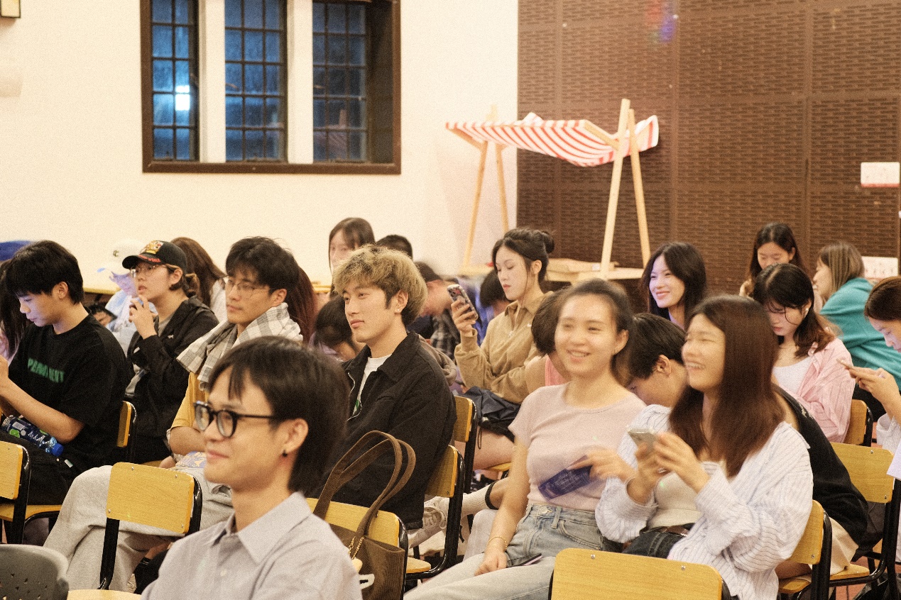 表演间隙,我们迎来了首次评分和游戏环节。现场观众扫描歌单上的二维码给前四位登台的选手打分。而在紧张刺激的“你说我猜”游戏中,同学们妙语连珠的形容让游戏过程生动有趣,掌声与笑声在整个礼堂中交织。