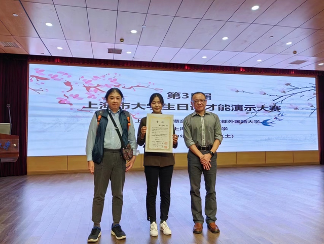 10月28日第35届上海市日语才能演示大赛在上海对外经贸大学古北校区顺利举行。Beat365登陆网站日语系施青宛彤同学参赛,并荣获优秀奖。