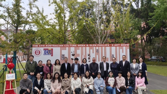 开幕式上由蔡永莲副校长和Clive教授为Glen Phillips的艺术展举行了揭幕仪式,庆祝两校合作25周年,其20幅水彩艺术品反映出中澳两国的风景和艺术交流的源远流长,并将在澳大利亚文化中心展出一周时间。