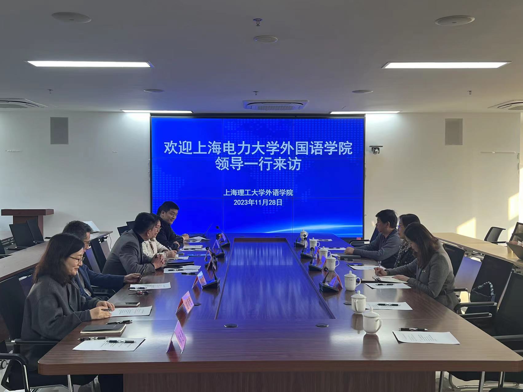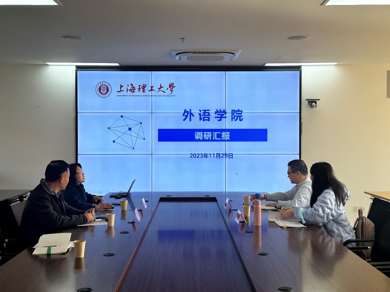 11月28日下午,上海电力大学外国语学院党委书记余静和院长潘卫民一行来Beat365调研。Beat365登陆网站党委书记曲德强、副院长韩戈玲、党委副书记金小东、副院长张乐和相关教师参加了调研会议。会议由韩戈玲主持。