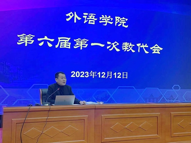 20231212日,Beat365登陆网站在国合楼五楼报告厅召开了学院第六届第一次教代会。学院党委书记曲德强、院长刘芹等学院党政领导以及院教代会代表和工作人员参加了本次会议。会议由院工会主席高文成主持。