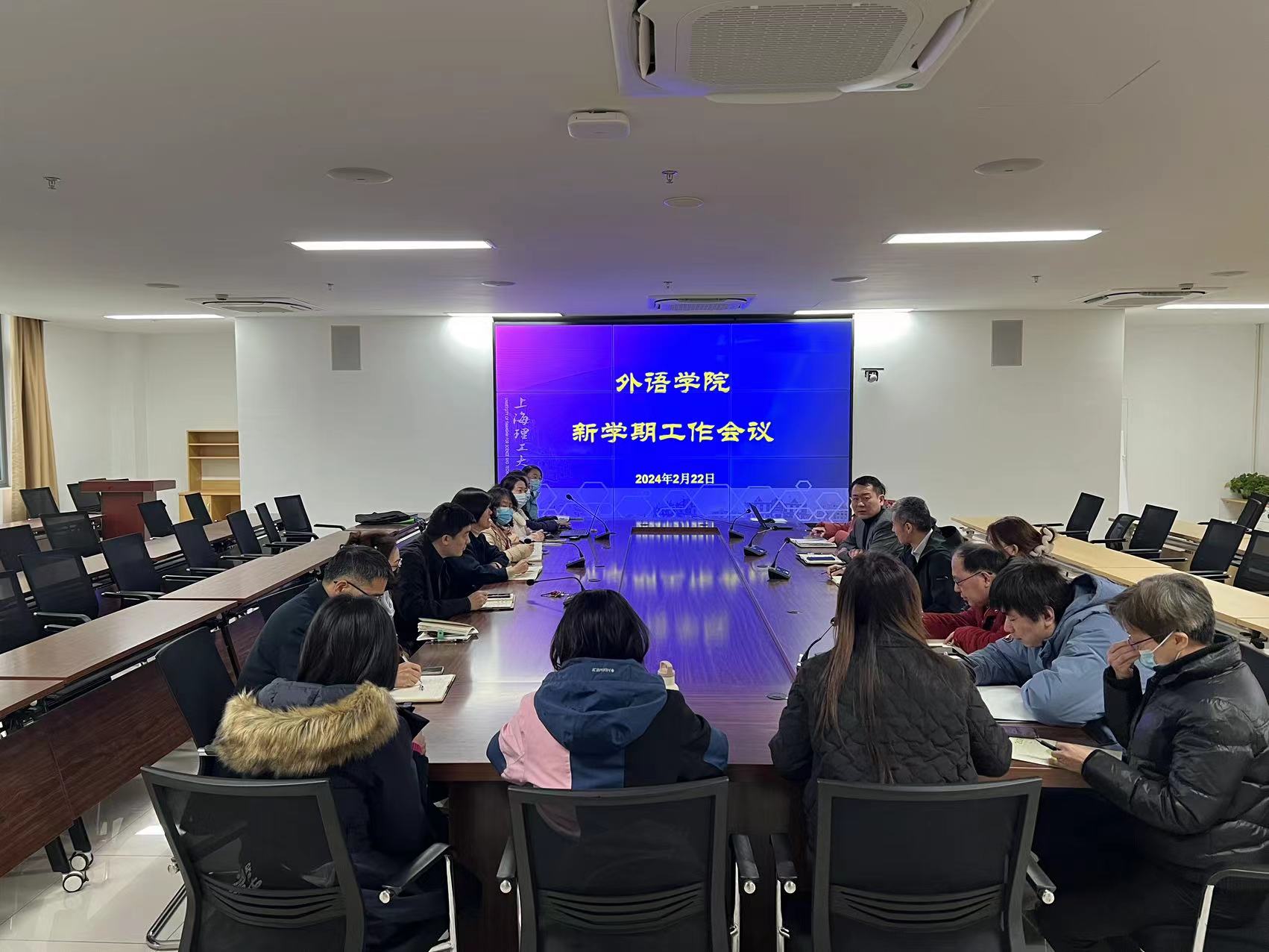 副院长韩戈玲重点强调了研究生招生复试和“沪江杯”翻译大赛的准备工作;副书记金小东通报了学生就业和寒假留校学生情况;副院长张乐对新一轮本科教育教学审核评估迎评促建工作进行了部署和动员。