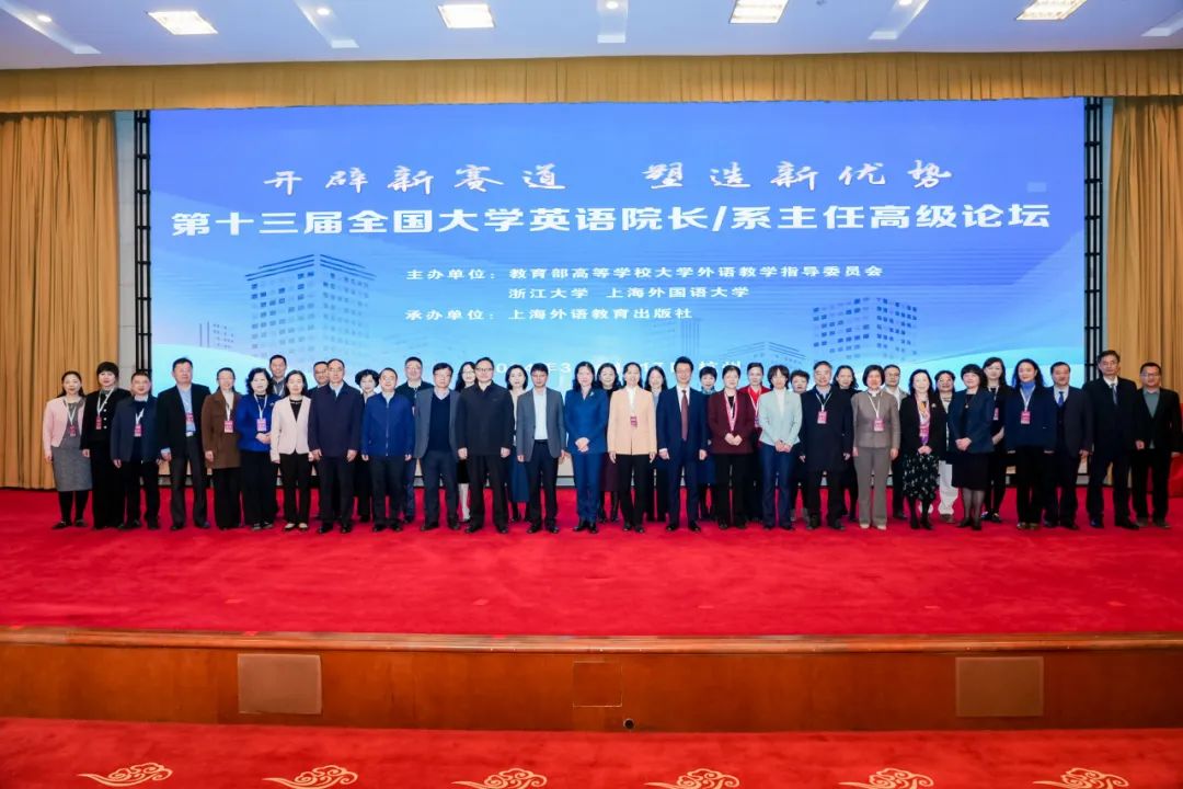 3月15日,由教育部高等学校大学外语教学指导委员会、浙江大学和上海外国语大学共同主办,上海外语教育出版社承办的“第十三届全国大学英语院长/系主任高级论坛”在杭州召开。论坛主题为“开辟新赛道,塑造新优势”,聚焦在新时代新思想的指引下,如何发挥数字化的引领作用,系统性打造大学英语课程体系,多维度促进教师发展,全方位塑造育人生态,开辟大学英语教学数字化新赛道;多维融通,协同治理,推动外语教学提质增效,助力产学研、校社企一体化的共同体构建。教育部高等学校大学外语教学指导委员会主任委员何莲珍教授、上海外国语大学尹冬梅书记、浙江大学周江洪副校长、上海外国语大学查明建副校长、广东外语外贸大学刘建达副校长、浙江外国语学院柴改英副校长、华侨大学王建华副校长、河南中医药大学张加民副书记、上海外国语大学胡开宝校长助理、上海外语教育出版社孙玉社长等领导出席。论坛吸引了近千名来自全国各地的大学英语院长/系主任线下参会,线上同步直播观看人次超过4万。