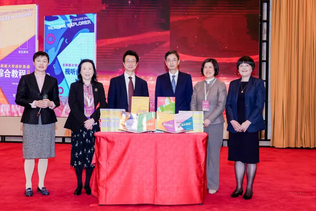 刘芹(右二)为“全新版大学进阶英语”(第二版)揭幕