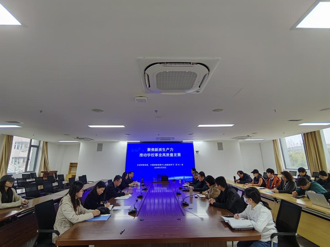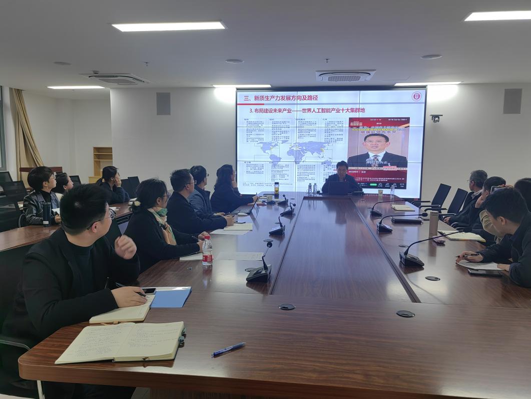 外语学院党委书记曲德强指出,新质生产力的论述是对马克思主义生产力理论的新发展,进一步丰富了习近平经济思想的内涵,为全面推进中国式现代化建设提供了根本遵循和行动指南,新质生产力对于我们的工作具有重要的指导意义。他谈到,新质生产力是推动高质量发展的内在要求和重要着力点,高校作为发展新质生产力的重要力量,要按照发展新质生产力要求,畅通教育、科技、人才的良性循环,要结合学院工作实际,在发展中展现更大作为,切实推进教育教学、人才培养、科技创新等各方面改革,推动学院事业的高质量发展。