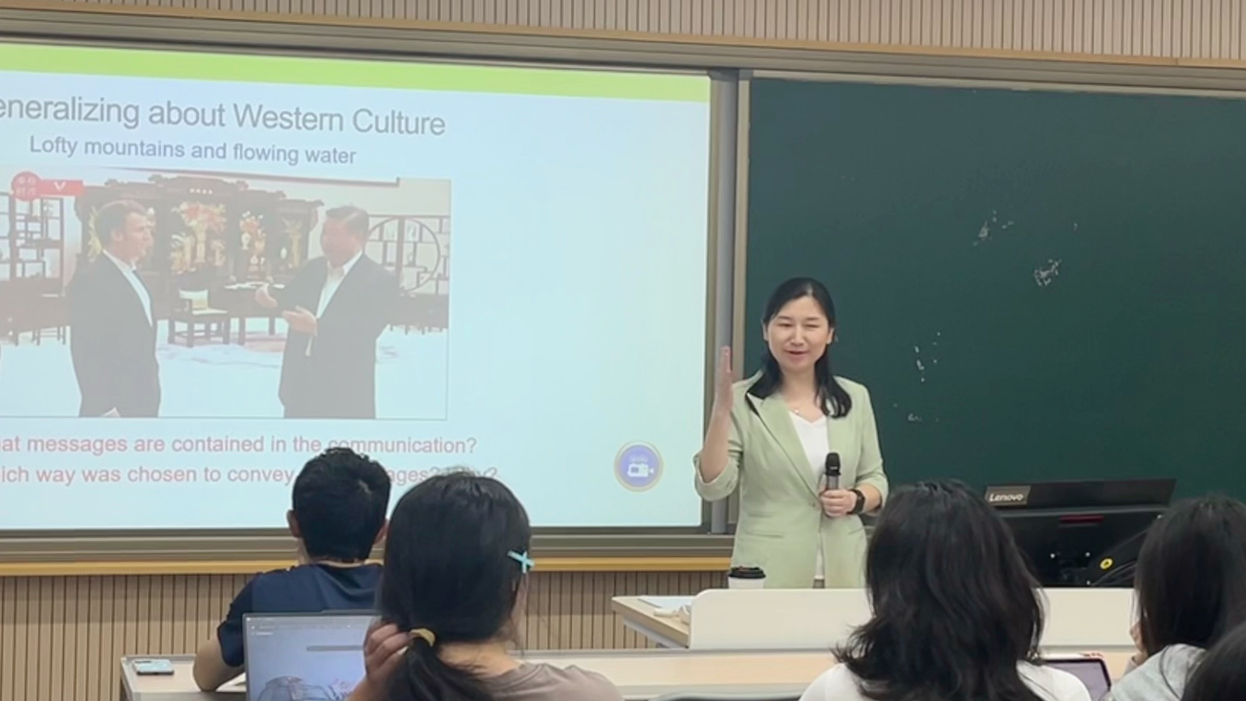 刘媛老师在教学设计中打破传统教学框架,巧妙地将“一网畅学”、“学习通”等现代教育技术平台融入课程,构建了一个由翻转课堂、拼图教学、课堂汇报等多彩互动模块组成的教学矩阵。这一设计促使学生在动态参与中亲历高低语境文化的微妙差异——从直白清晰的低语境文化(西方社会特色)到深邃含蓄的高语境文化(以中国文化为代表的亚洲文化精髓),学生们不仅学会了如何在不同文化语境下精准与婉转并用地表达思想,还掌握了在非言语线索与深厚文化背景中解码与编码信息的艺术。尤为重要的是,课程还将“家国情怀”这一富含情感与价值观的概念融入跨文化讨论之中,激励理工科学生在全球化视阈下反思个人定位与社会责任,深化对自我与世界的理解。通过生动的案例剖析、中英爱国诗歌解读、城市文旅宣传片比较,学生们不仅汲取了跨文化理论的精髓,还锤炼了在全球科技舞台上的文化敏感度与适应性,更习得了如何在国际交流中自信展现中国文化魅力,讲述动人的中国故事,从而在全球化洪流中成为沟通东西、连接未来的桥梁。