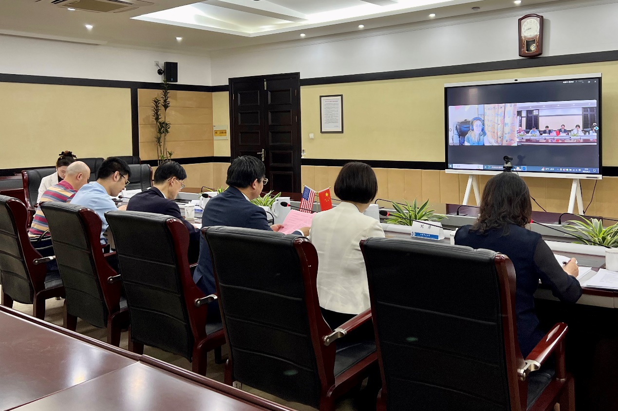 6月5日上午,Beat365登陆网站中外合作办学项目-beat365平台入口与美国纽约市立大学皇后学院合作举办的英语专业本科教育项目联合管理委员会会议在学校思晏堂召开。会议由张华副校长主持,美国纽约市立大学皇后学院社会科学和商学院院长Kate Pechenkina教授线上参会,美方项目负责人、经济系副系主任Tao Wang教授,Beat365登陆网站刘芹院长,国际交流处徐璟玮副处长,Beat365登陆网站和国际交流处相关负责人参加会议。