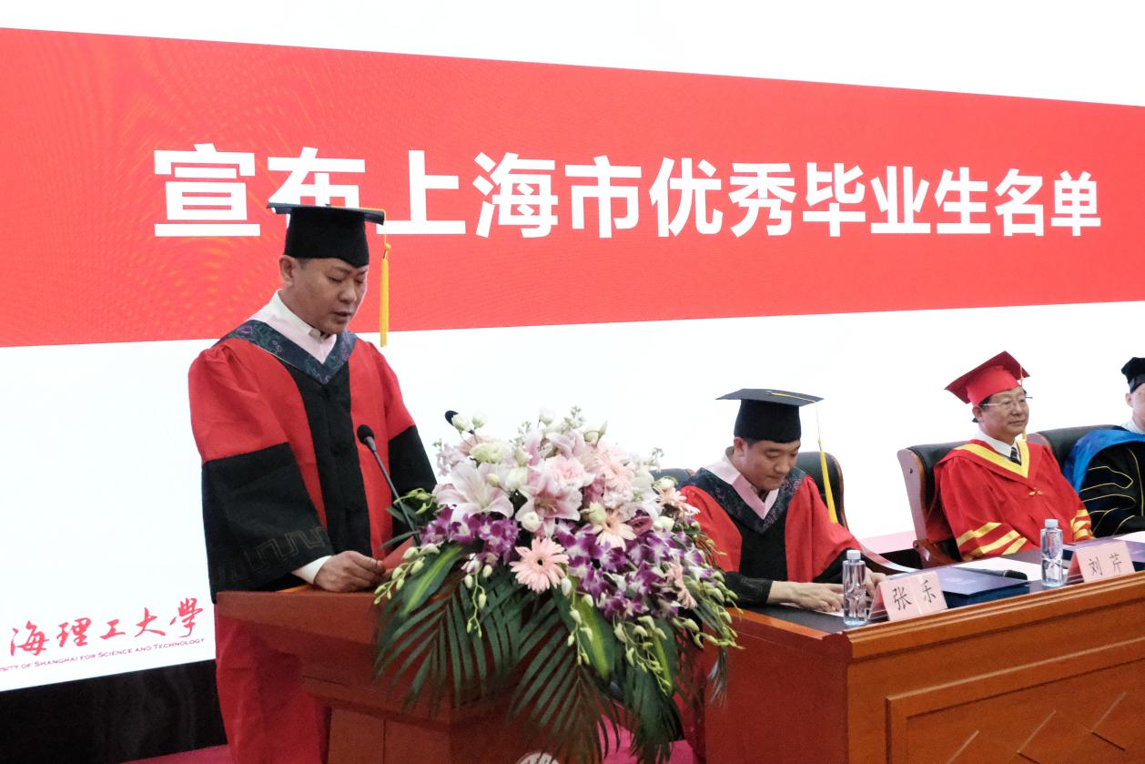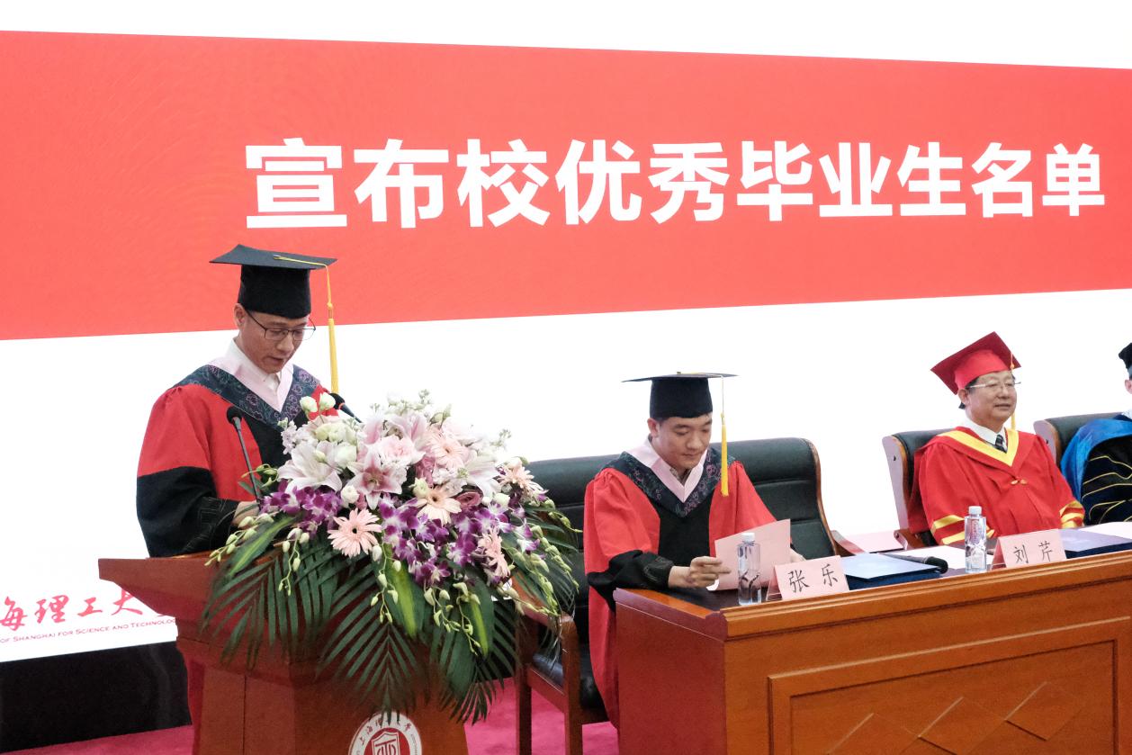 典礼上,学院党委书记曲德强宣布荣获“上海市优秀毕业生”称号的学生名单,院长刘芹教授宣布荣获“合作办学项目优秀毕业生奖学金”的学生名单,学院党委副书记金小东宣布荣获“beat365平台入口优秀毕业生”称号的学生名单,学院副院长张乐宣布荣获思源校友奖学金的学生名单。