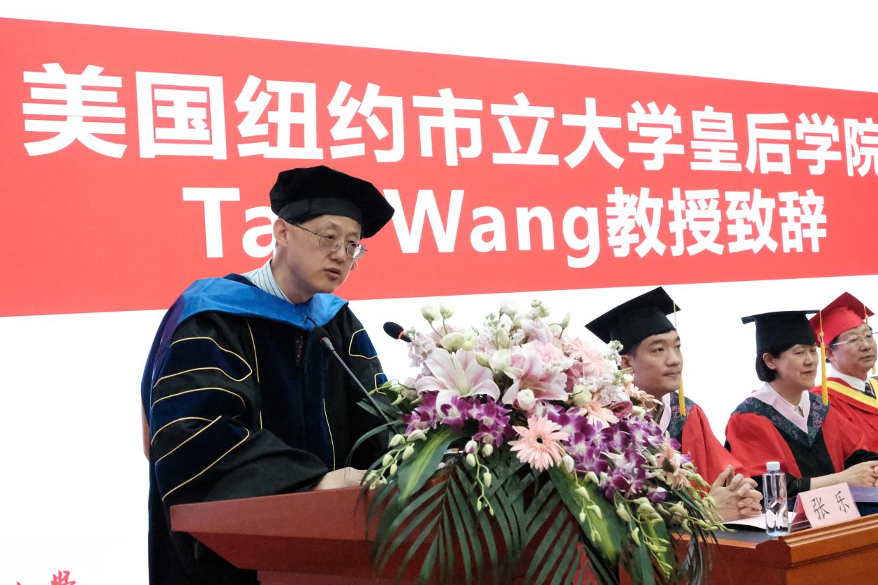 随后,Tao Wang教授代表皇后学院向毕业生们表示诚挚的问候,对beat365平台入口领导、老师、家长们对教育的辛勤付出表示感谢。Tao Wang教授讲述成为一个成功人士的必要品质:梦想、信仰、计划并且不畏失败,祝愿毕业生们携着这些美好品质踏上未来的成功之路。