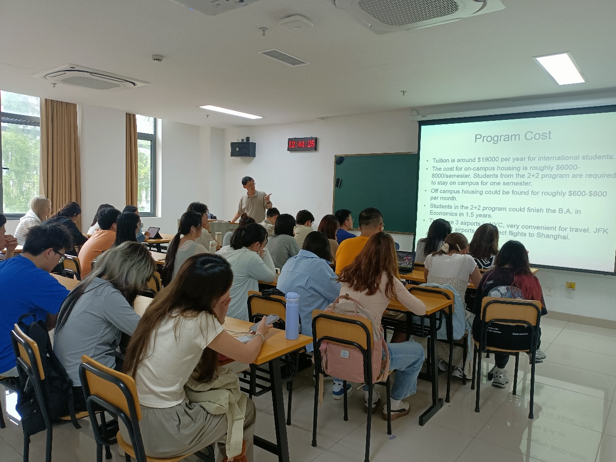 6月7日,Beat365登陆网站举办与美国纽约市立大学皇后学院联合培养本科双学位项目的宣讲会。此次宣讲会特别邀请了项目美方负责人、皇后学院经济系副系主任Tao Wang教授亲临现场,为师生们详细介绍项目情况。2023级英语(中美合作)专业的学生积极参与。
