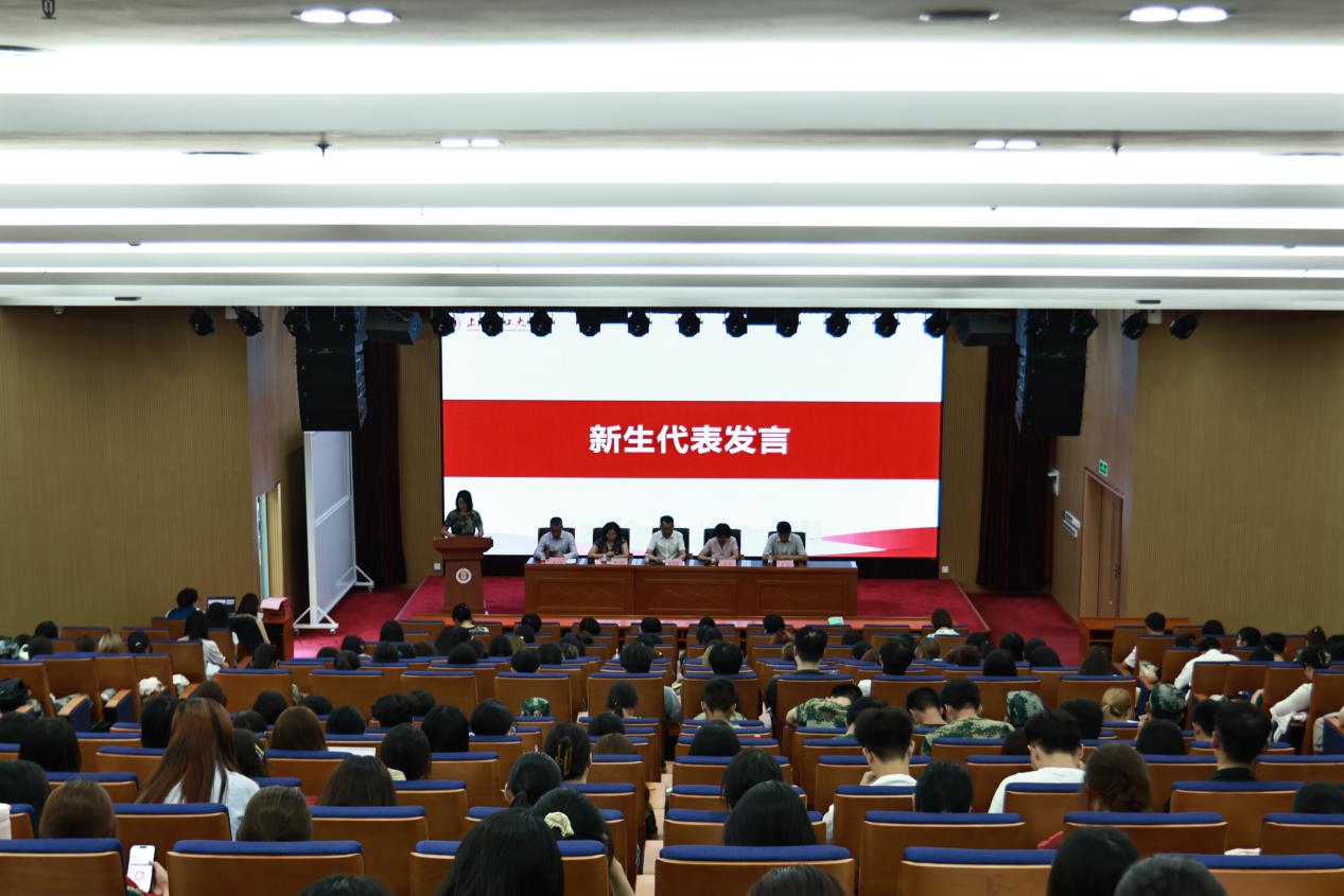 本科新生代表邓元妍和研究生新生代表康晓彤分别上台发言,他们表达了对未来学习生活的憧憬与期待,同时也展现了Beat365登陆网站学子积极向上、敢于追梦的精神风貌。