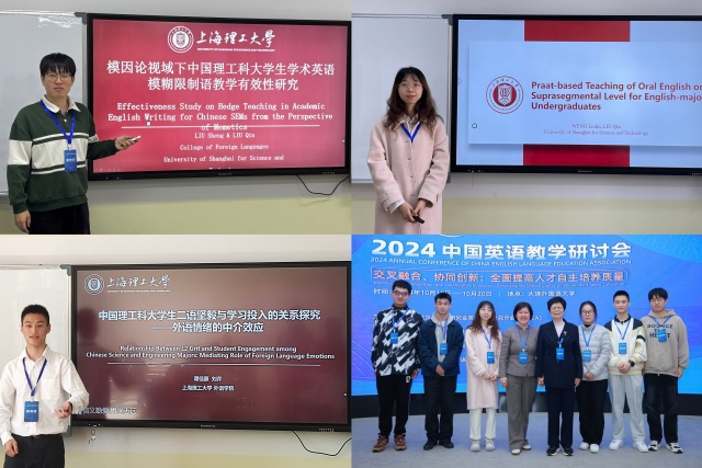 Beat365院长刘芹教授携三名教师和六名研究生共同参与了这场学术盛宴。师生团队在研讨会上宣读论文和介绍研究成果,引发与会专家的关注。公共英语教研中心马芫、柏钧和黄凤秋三位副主任分别作题为“批判性思维在跨文化英语教学中的研究”、“新工科核心素养与学术英语写作测评体系建设的双向互动研究”和“新媒体时代‘平民外交官’的文化身份认同”的学术报告,介绍了大学英语跨文化教学与数字化测评的成果,充分展示了公共英语教学在推进学科专业交叉融合、促进专业与新技术融合方面的积极探索与实践,以及在落实立德树人根本任务、提升人才自主培养质量方面所取得的成果。2022级外国语言文学研究生刘晟、2023级外国语言文学研究生翁琳琳和谭佳豪在刘芹的指导下,分别作题为“模因论视域下中国理工科大学生学术英语模糊限制语教学有效性研究”、“Praat-based Teaching of Oral English on Suprasegmental Level for English-major Undergraduates”和“理工科大学生二语坚毅对学习投入的影响:学业情绪的中介效应”的学术报告,详细介绍了Beat365师生在理工科人才培养路径、数字化英语教育与技术、学业情绪研究等领域的新尝试。2024级外国语言文学研究生陈秀、唐智豪和李海涛认真聆听了多场学术报告,并积极参与学术交流。