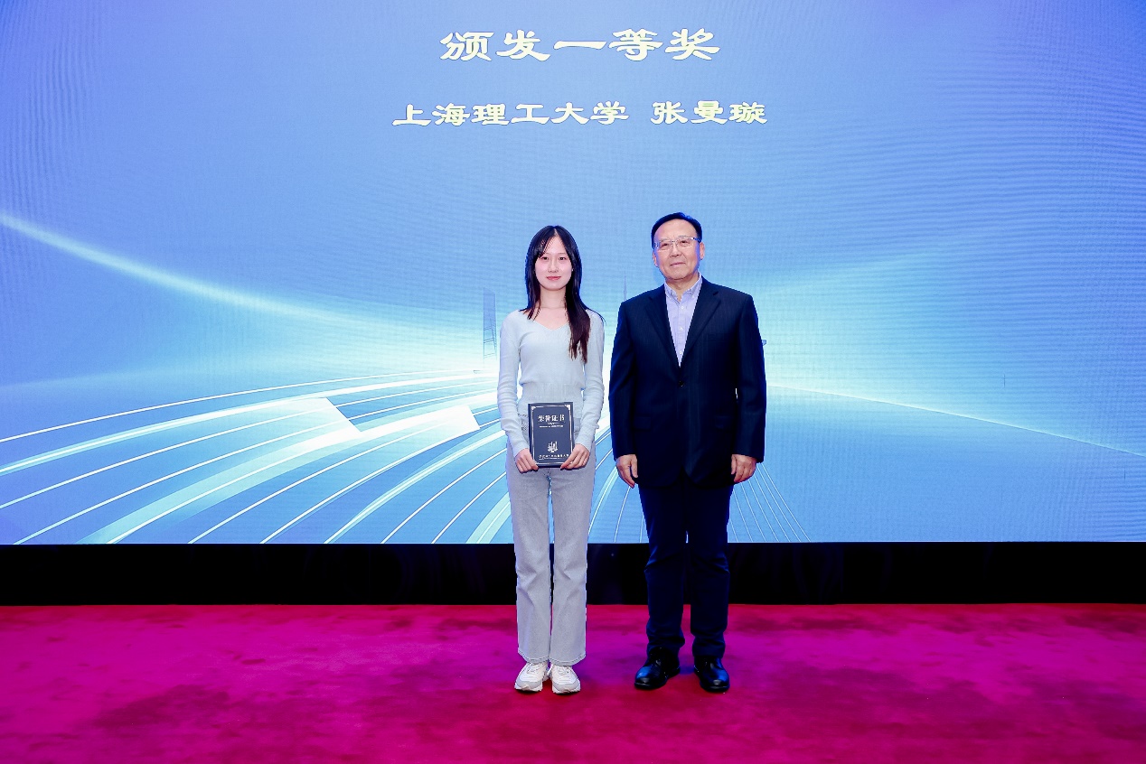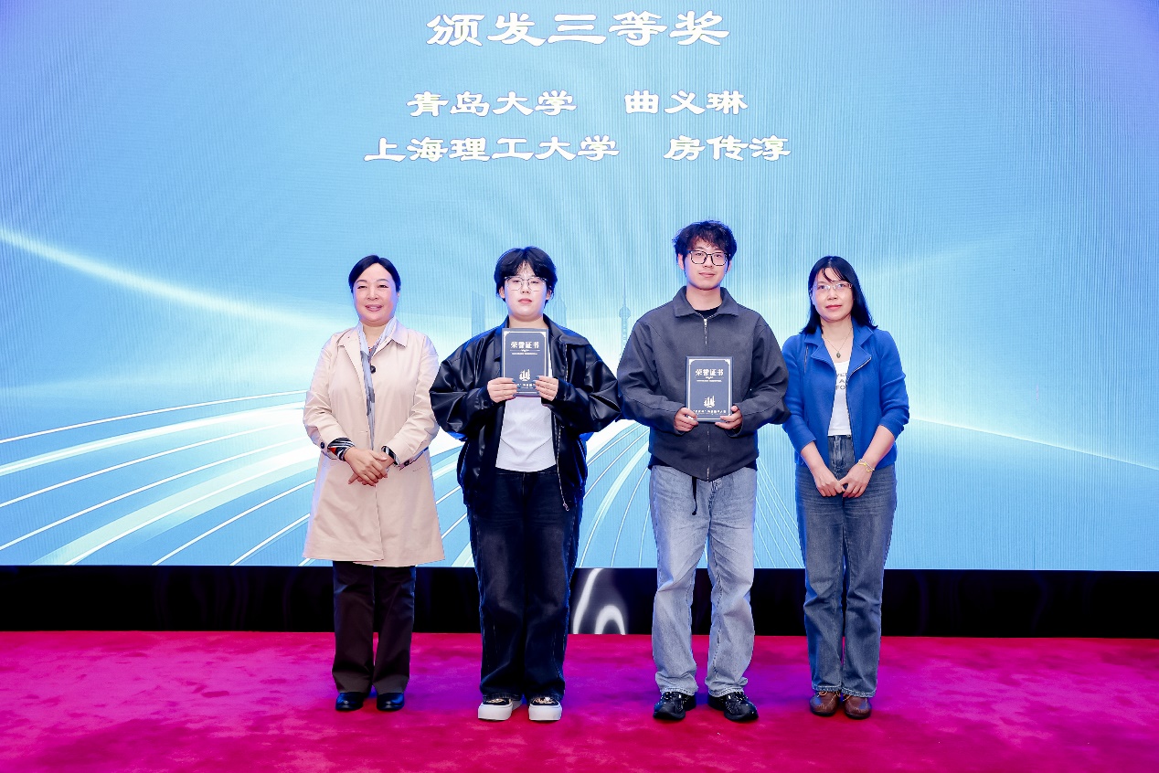 接着,第三届“沪江杯”科技翻译大赛颁奖典礼拉开帷幕。本次大赛设立英、日、德与中文互译,吸引了来自285家院校及企事业单位、共计2261人次报名参赛。大赛评审委员会组织34位专家共进行初评、复评和总评三轮匿名评审,共评选出379名获奖者。其中,英语组获奖人数为250人,日语组获奖人数为71人,德语组获奖人数为58人;一等奖10人,二等奖20人,三等奖65人和优秀奖284人。大赛组委会主任委员、大连外国语大学原副校长杨俊峰,东华大学Beat365登陆网站院长张曦教授,上海体育大学新闻与传播学院院长陈丽江教授,上海电机学院外国语学院院长张玉双教授,上海建桥学院外国语学院副院长王海燕教授为获奖学生代表颁奖。一等奖获得者、Beat36523级翻译专业研究生张曼璇发表获奖感言。