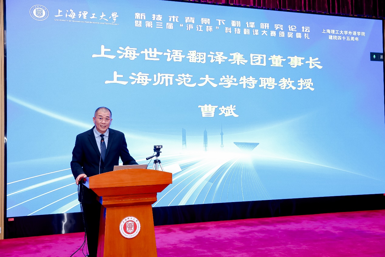 杨俊峰教授代表大赛组委会致辞。他指出,“沪江杯”翻译大赛为致力于科技翻译实践的学子们提供了宝贵的学习和提升机会,促进科技翻译教学的深层次和高水平的发展。他认为科技类翻译大赛有助于促进科技成果转化,推动科技国际合作,带动外语教学发展,推动翻译人才培养质量提升,在促进科技创新、跨文化交流和信息传播等方面发挥着至关重要的作用。上海世语翻译集团董事长、上海师范大学特聘教授曹斌代表承办方感谢各方对“沪江杯”科技翻译大赛的支持和贡献,生动地解说 “沪江杯”大赛名称的渊源,介绍举办高水平全国翻译大赛的经验和影响力,对明年的“沪江杯”翻译大赛给予美好祝愿。最后,Beat365登陆网站副院长韩戈玲教授致谢,带领beat365平台入口MTI教育中心王勇和杨本明教授向参与大赛工作的所有人员表示真诚感谢!至此,“新技术背景下翻译研究论坛暨第三届‘沪江杯’科技翻译大赛”圆满落幕,期待2025年第四届“沪江杯”展现新面貌、新动力。
