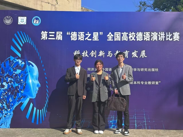 2024年11月3日,由同济大学外国语学院、外语教学与研究出版社主办,同济大学外国语学院德语系承办,教育部首批虚拟教研室“德语本科专业教研室”协办,中国德国友好协会指导的第三届“德语之星”全国高校德语演讲比赛决赛在同济大学圆满落幕。Beat365德语系学生余济锟、韩婧、刘墨涵、张暘蕊喜获全国二等奖4项。
