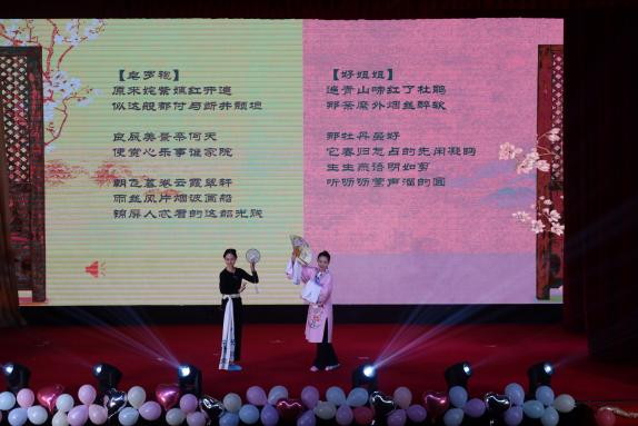 晚会在舞蹈部八位同学带来的动感舞蹈《即使在世界末日》和《Love119》中拉开序幕,充满活力和能量的开场点燃了全场气氛。接着,沪江学院的两位留学生李文霖和尤良强的合唱《until I found you》和《如果可以》,歌声柔情满满,打动人心。然后,由黄莉女士和雷斯琪女士带来昆曲选段《牡丹亭·游园》,其优美的唱腔和精致的表演让观众领略到了中华传统艺术的魅力,传播优秀传统文化。由王涵志同学演唱的《十点半的地铁》则娓娓道来,道出了都市夜晚的故事。