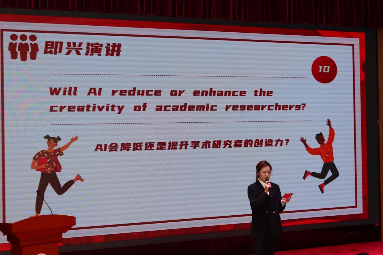 本次比赛共分为三个环节:定题演讲、即兴演讲以及提问环节。选手们先进行五分钟的定题演讲,随后根据随机抽取到的题目进行即兴演讲,时间为两分钟,最后由评委就选手的两次演讲进行提问。