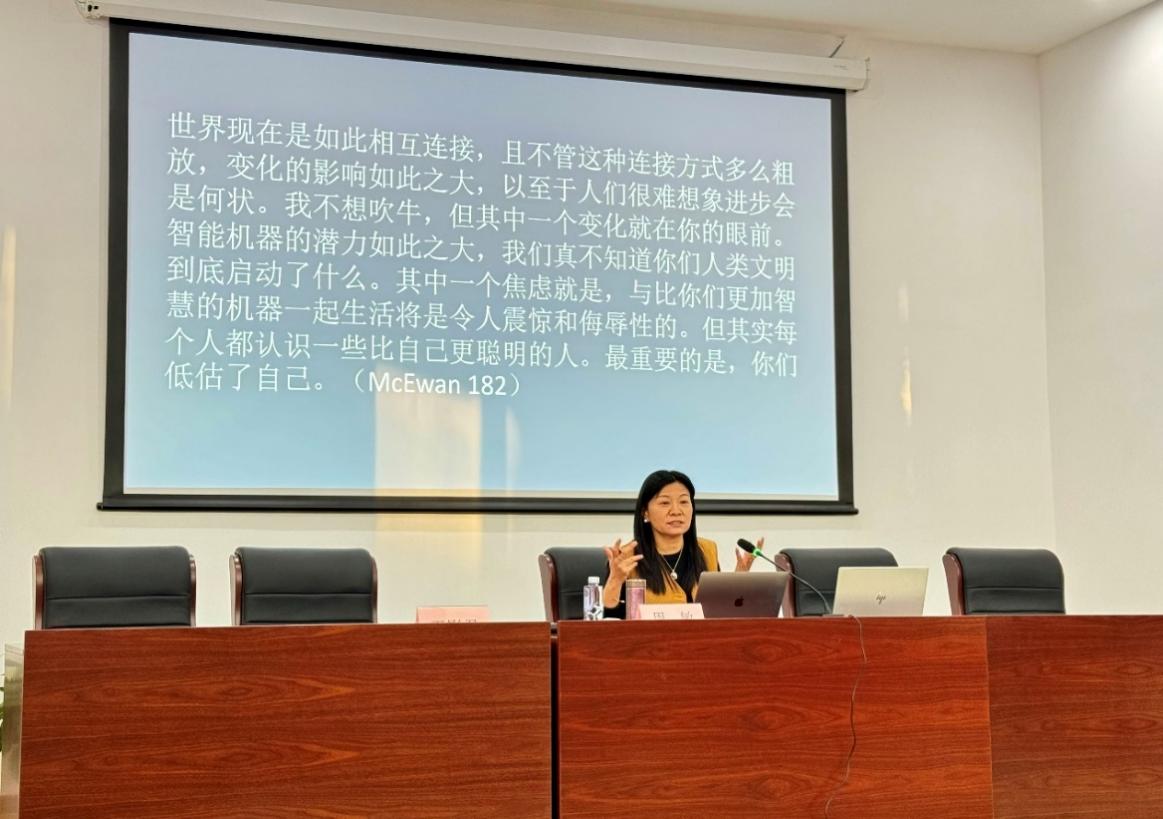 12月20日下午,杭州师范大学特聘教授、外国语学院院长、教育部长江学者特聘教授周敏受邀为Beat365师生带来了题为“科幻文学的伦理教益:《像我一样的机器》的人机共同体的文学想象”的精彩专题讲座。Beat365韩戈玲副院长亲临讲座现场,王影君副教授主持。Beat3652024级研究生和外国文学研究所的部分骨干教师出席了本次讲座。