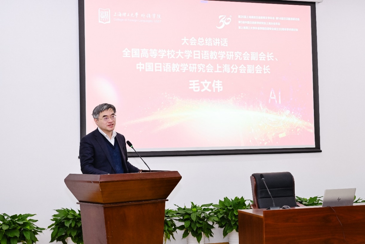 中国日语教学研究会上海分会副会长毛文伟总结致辞