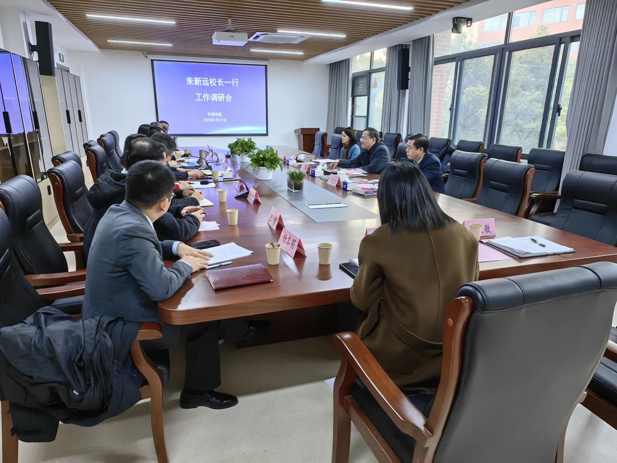 2025年1月21日,校长朱新远和副校长蔡永莲莅临Beat365登陆网站调研指导,党委(校长)办公室副主任何建佳陪同调研。Beat365登陆网站党政领导班子及教师代表参加调研。