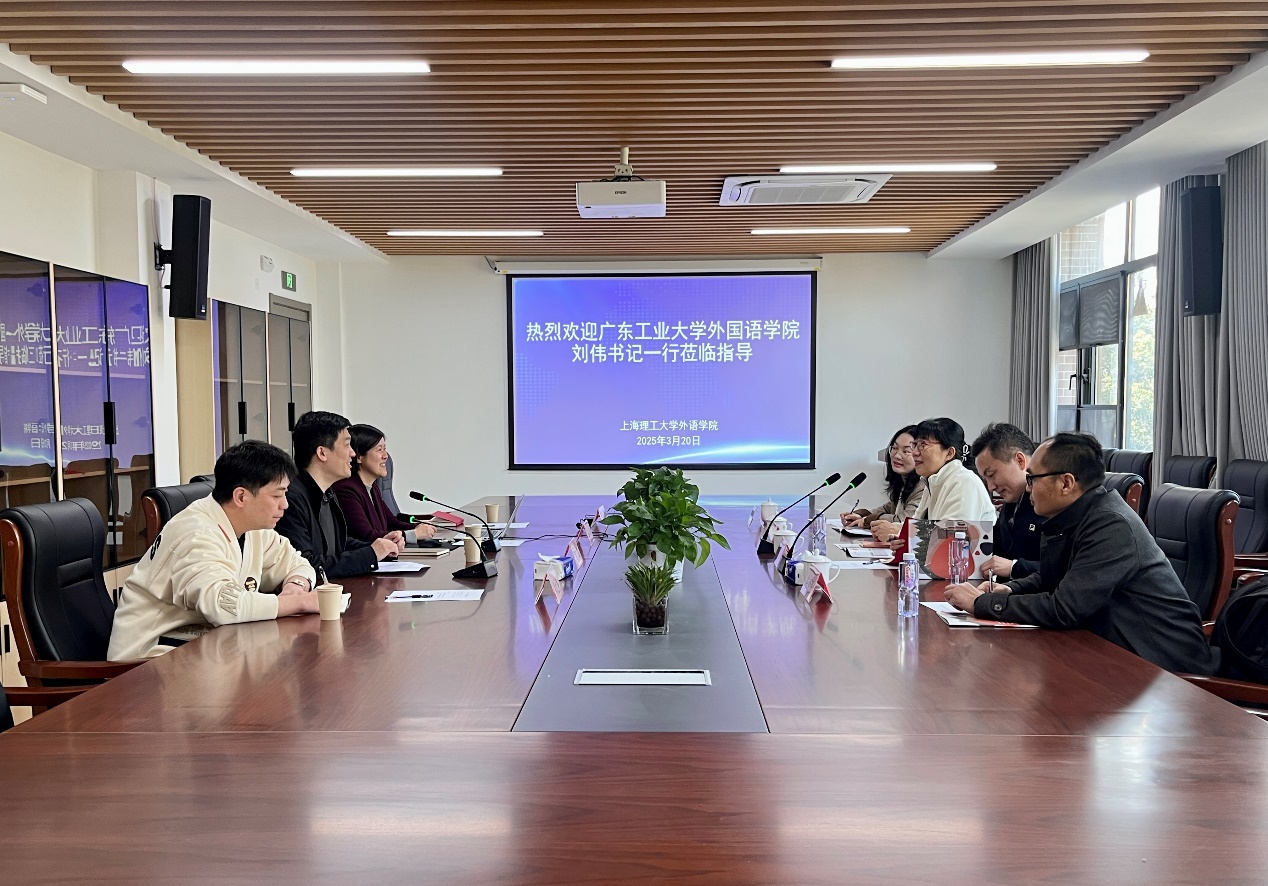 3月20日下午,广东工业大学外国语学院党委书记刘伟、副院长李道全、院长助理任朝旺、党政办主任谭小琴一行四人来Beat365调研。Beat365登陆网站院长刘芹、副院长张乐和相关办公室人员参加了座谈会。会议由张乐主持。