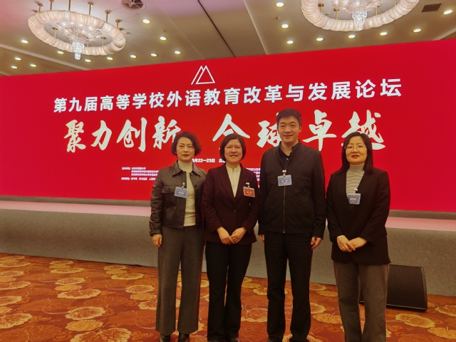 3月22-23日,第九届全国高等学校外语教育改革与发展高端论坛在北京隆重举行。本次论坛由北京外国语大学、教育部高等学校外国语言文学类专业教学指导委员会、教育部高等学校大学外语教学指导委员会与中国高教教育学会外语教学研究分会联合主办,以“聚力创新 全球卓越”为主题,汇聚教育部、中国侨联、中宣部、中央企业及北京外事办相关领导及2,200余位高等外语教育界专家学者共襄盛举。Beat365院长刘芹、副院长张乐及英语系(科技翻译)主任邬菊艳和公共英语教研中心副主任黄凤秋参会。