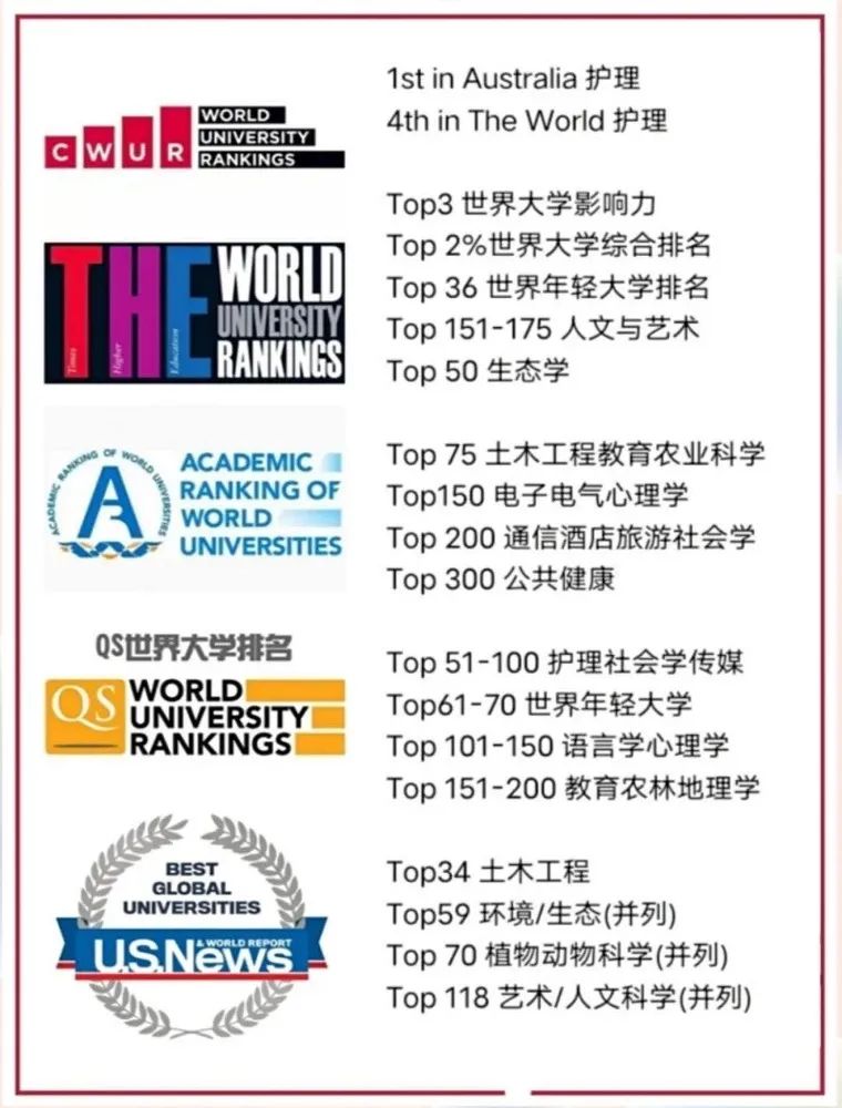 根据2024年泰晤士报高等教育(THE)世界大学排名,西悉尼大学名列世界大学排名前2%。连续三年荣获THE世界大学影响力排名第一。