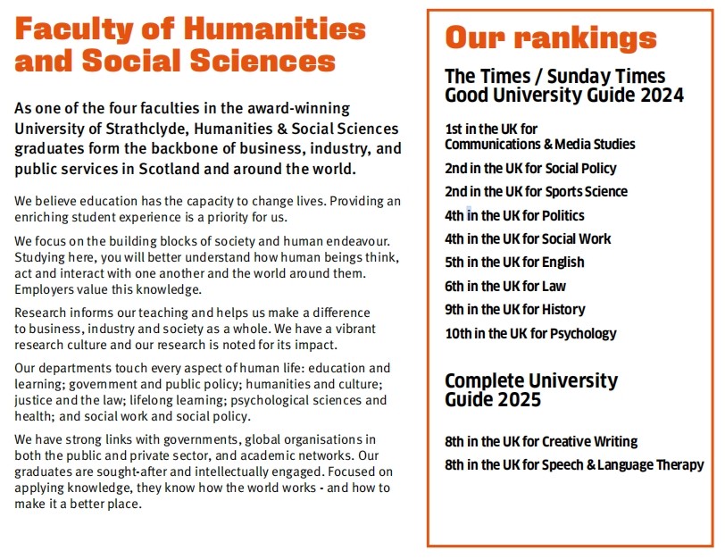 Beat365英语(中美合作)或英语(科技翻译)专业学生可以在思克莱德大学人文与社会科学学院(Faculty of Humanities & Social Sciences)学习一学年(+1)或一学期(+0.5),修读学分可以转换为Beat365学分。