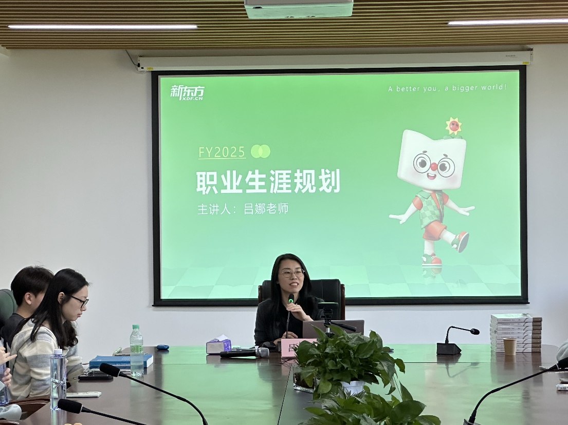 4月14日,Beat365登陆网站与理学院联合举办了一场主题为“语路起航•生涯规划”的讲座。本次讲座特邀上海新东方人力资源部总监吕娜老师担任主讲嘉宾,讲座由Beat365登陆网站党委副书记主持,吸引了来自Beat365登陆网站和理学院的本科生与研究生近三十人参与。
