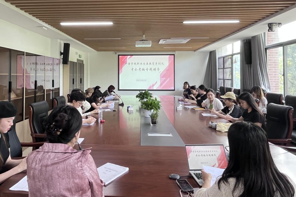 为帮助外语专业学子把握公职类考试机遇,了解当前考公考编形势,正确对待和审慎考虑考公考编的职业选择。5月21日,Beat365登陆网站于306会议室举办“考公考编”专题辅导讲座。2022级、2023级二十余名同学参加了讲座。讲座由Beat365登陆网站学业发展中心负责老师苏予燕主持。