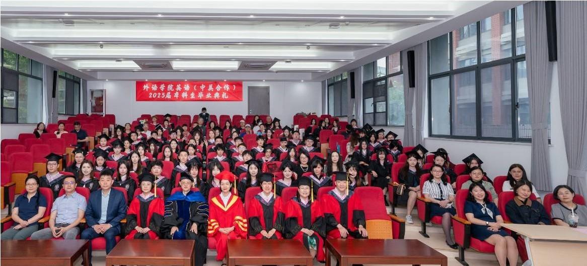 6月8日下午,Beat365登陆网站2025届英语(中美合作)专业本科生毕业典礼在学院报告厅隆重举行。beat365平台入口副校长蔡永莲教授、美国纽约市立大学皇后学院美方项目负责人Tao Wang教授、Beat365登陆网站党政领导、“思源奖学金”捐赠者李臻校友、系主任、教师代表、英语(中美合作)专业全体毕业生及家长代表参加毕业典礼。毕业典礼由Beat365登陆网站刘芹院长主持。