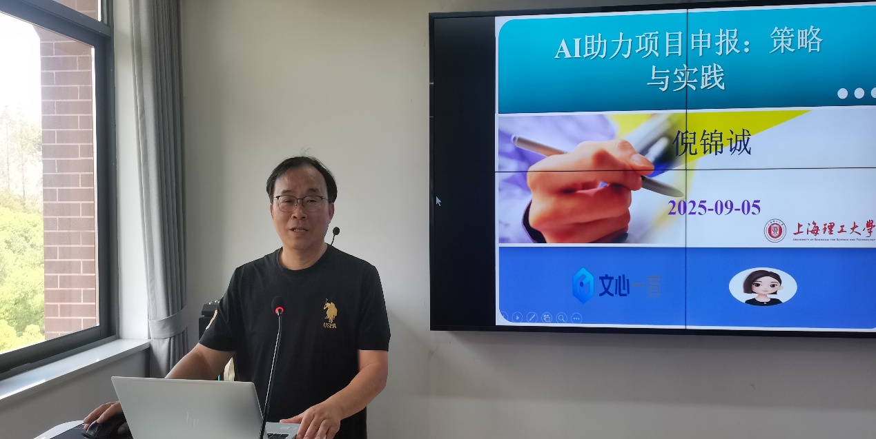 2025年9月5日,语言学研究所在Beat365登陆网站502会议室举办AI助力课题申报和论文撰写研讨会,旨在提升教师运用AI技术增强科研能力。倪锦诚教授做了题为"AI赋能项目申报:策略和实践"的专题讲座,重点介绍了多种AI工具在生成选题、文献综述和内容优化等方面的具体应用案例。倪教授强调,在使用AI辅助申报过程中必须坚持学术诚信,确保研究成果的原创性和合规性。