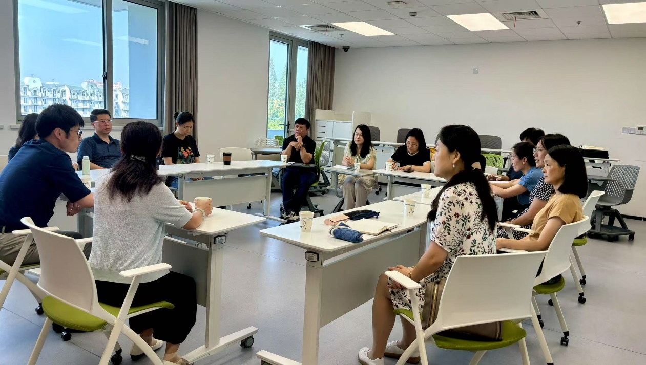 交流期间,Beat365教师首先对复旦大学外文学院的精心组织和热情接待表示了衷心的感谢。陈杰副院长回顾了两年多以来复旦外文学院外语+计算机双学位的发展历程,翻译系主任陶友兰教授、管玉华主任、姜倩博士和门泊舟博士分享了他们在AI技术与外语教学深度融合领域的最新研究成果和宝贵经验。双方重点就以下议题展开了热烈讨论:在“AI+笔译”方面,陶教授分享了如何利用机器翻译引擎、译后编辑技术以及AI辅助翻译工具提升笔译教学效率与质量,培养学生适应人机协同翻译新模式的能力。在“AI+口译”方面,管教授分享了外文学院口译课程的特点,重点交流了AI赋能口译教学与实践过程中面临的机遇与挑战,强调了口译实验室建设与大数据模型建设的重要性。在“翻译技术”方面,老师们深入交流了计算机辅助翻译、语料库技术、本地化工具以及翻译项目管理平台在教学与科研中的整合与应用,并就如何培养学生的翻译技术素养交换了意见。在“AI+写作”方面,双方重点探讨了如何引导学生合理、批判性地使用AI写作辅助工具提升外语写作能力。