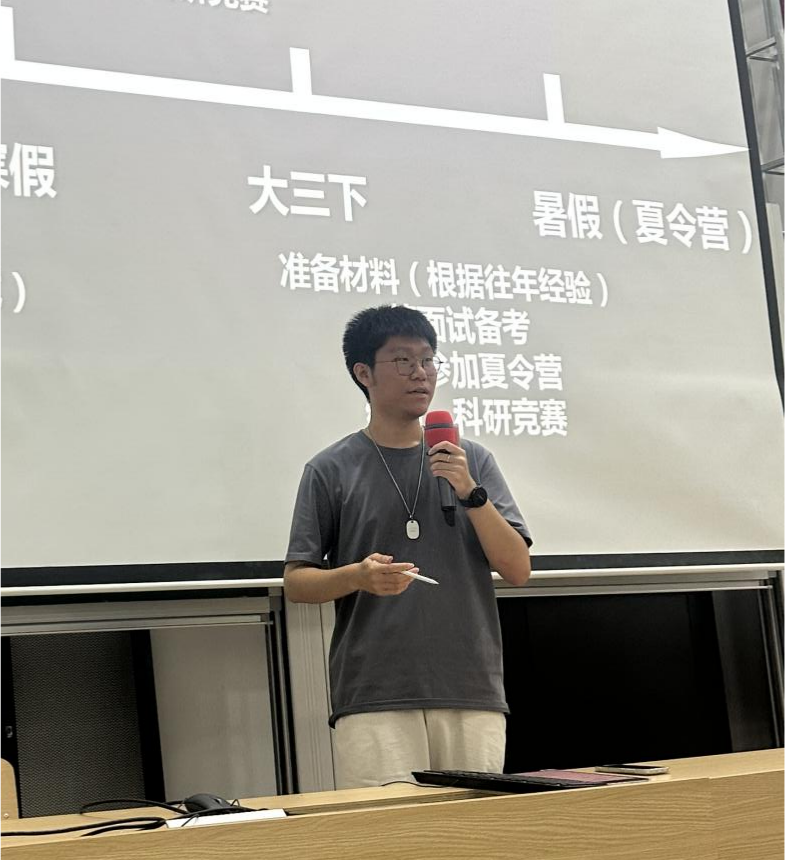 本次活动特邀2022级五位成绩优异、经验丰富的大四学长学姐担任分享嘉宾,共有来自大一至大三的三十余名学生参加。分享会上,五位学长学姐结合自身经历,从文件政策、专业选择、材料准备、背景积累、心理调适等多角度展开分享。