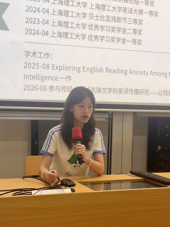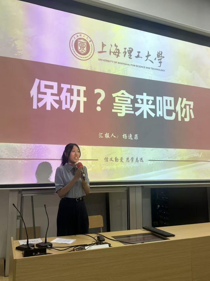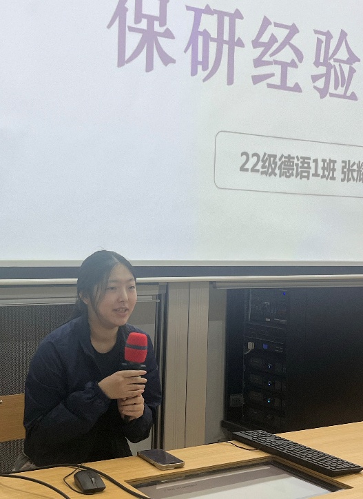 被北京外国语大学英语笔译专业录取的霍雨佳同学详细介绍并区分了保研、考研、就业的毕业选择。她建议,可以优先积累自己的专业能力,再逐步获取更多的奖项及论文竞赛机会,并详细分享了论文选题和发表的大致流程与注意点,以及如何有效发表论文,其“干货满满”的分享让在场同学受益匪浅。