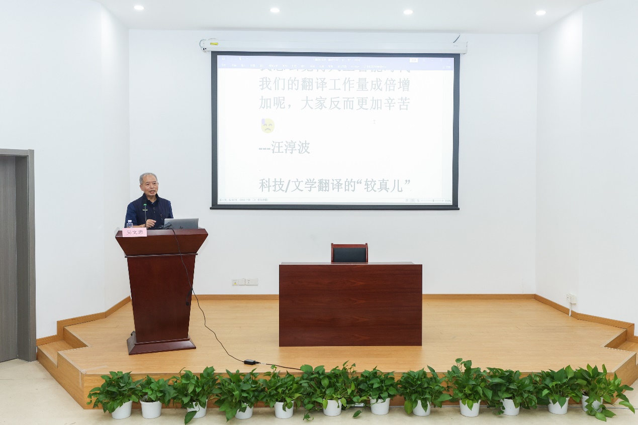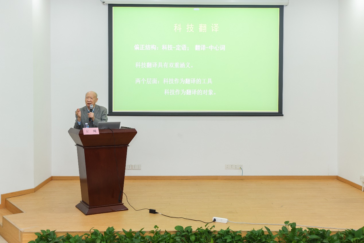 柴明熲教授的发言以他深邃的学术视野阐释了翻译能力养成的本质规律。他以参与百科全书编撰及联合国文件翻译的亲身经历为例,强调翻译素养的淬炼乃终身之功,即课堂习得的知识图谱终须在真实世界的语言疆场中拓展,在跨文化交锋的熔炉里重塑。他殷切寄语新生代译者:面对AI技术带来的挑战,高端、富有创造性的翻译工作依然离不开译者的人文智慧与专业判断。左飚教授深刻阐释了科技翻译的双重维度,科技既是译者手中的利器,亦是其笔下的华章。他强调,科技翻译架起了全球知识共享与科技进步的桥梁,保障了技术产品精准的全球化与本地化,筑牢安全与合规的基石,促进经济发展与国际经贸工作,维护国家技术主权,增强国际话语权。他勉励翻译专业学生在实践中不断精进,肩负起时代赋予翻译工作者的使命。