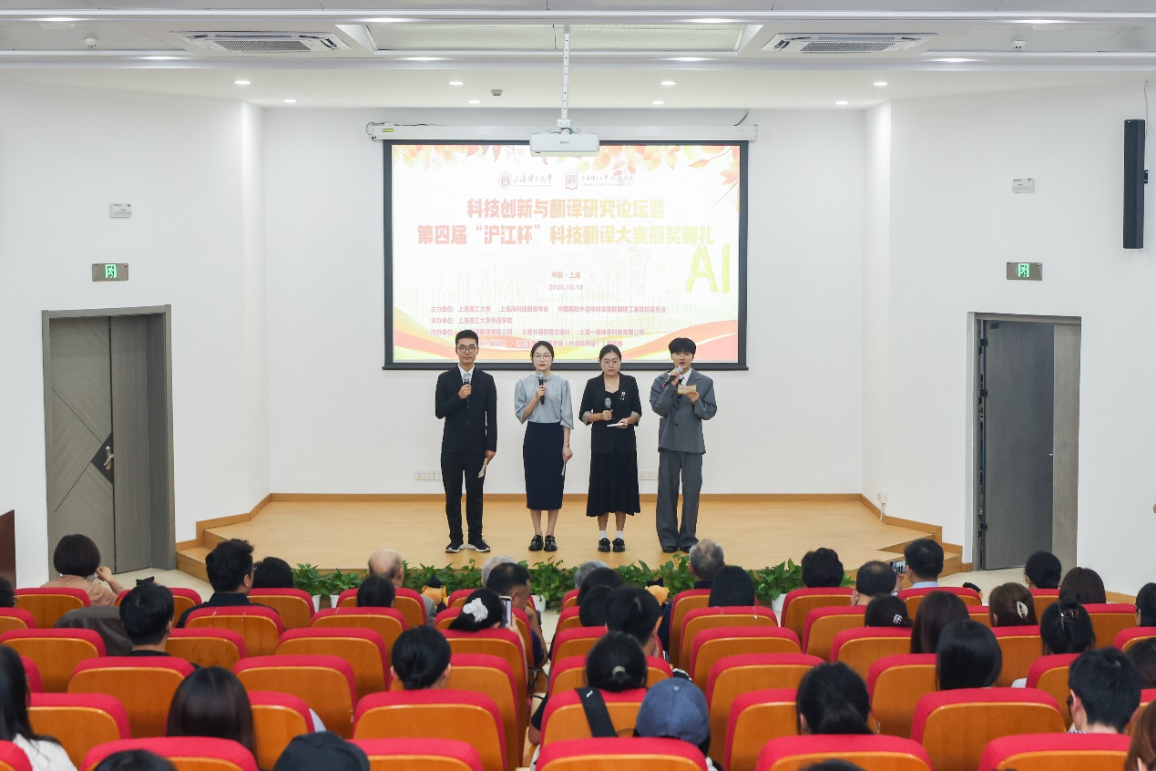 2025年10月18日,“科技创新与翻译研究论坛暨第四届‘沪江杯’科技翻译大赛颁奖典礼”在Beat365登陆网站报告厅隆重举办 。本次活动由Beat365、上海市科技翻译学会以及中国高校外语学科发展联盟理工类院校委员会主办,Beat365登陆网站承办,上海世语翻译有限公司、上海外语教育出版社、《上海翻译》编辑部以及《beat365平台入口学报(社会科学版)》编辑部协办。