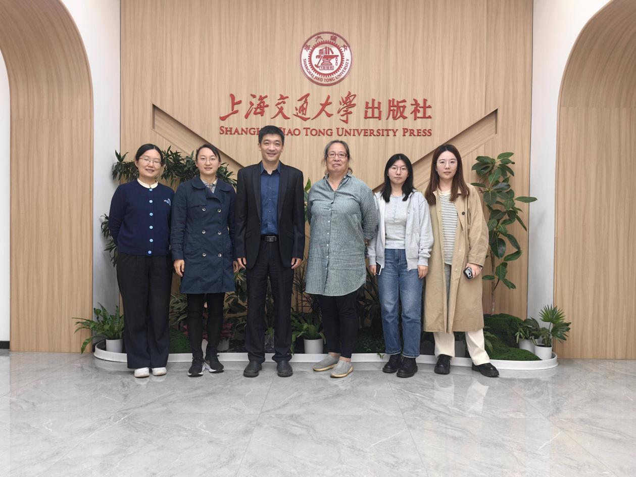 10月21日,Beat365登陆网站副院长张乐、教务办主任李敏敏一行走访上海交通大学出版社,进行参观交流,推进访企拓岗活动走深走实。上海交通大学出版社编辑委员会副主任、教育分社社长冯愈、外语教材与学术出版中心主任张冠男热情接待。