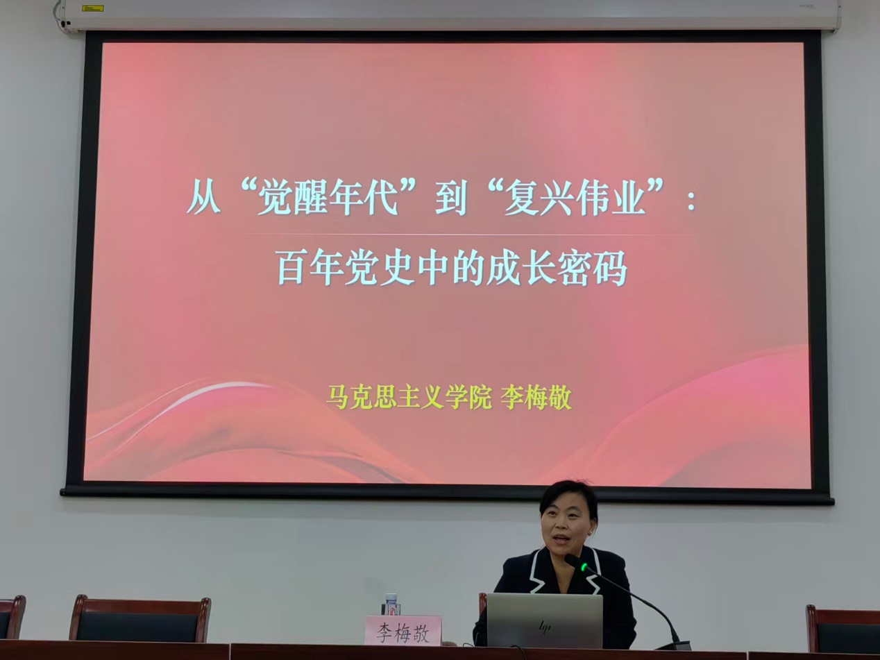 11月4日,Beat365登陆网站第56期入党积极分子培训班第三讲在学院报告厅顺利举行。本次党课特邀马克思主义学院副教授李梅敬担任主讲,以《从“觉醒年代”到“复兴伟业”:百年党史中的成长密码》为主题,为学员们带来一场思想深刻、内容丰富的理论教学。
