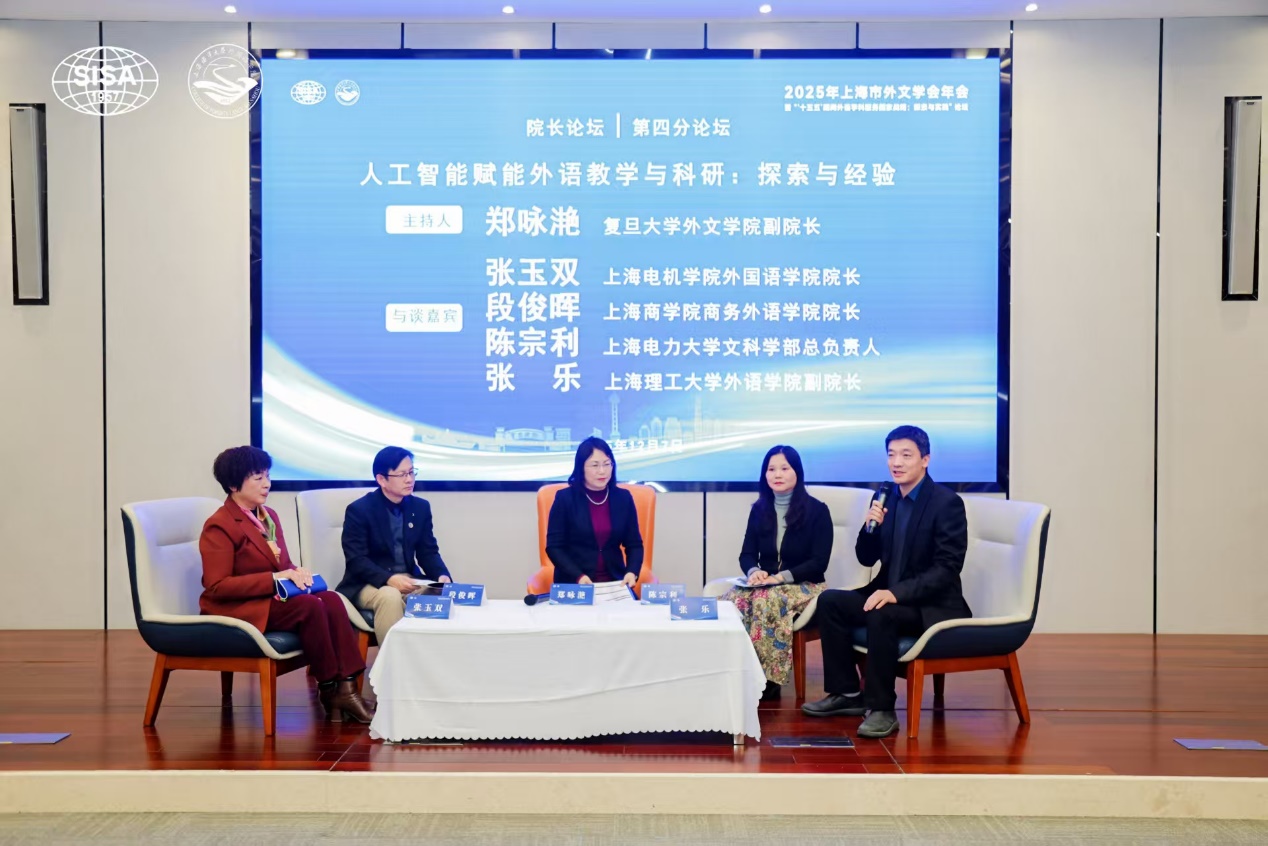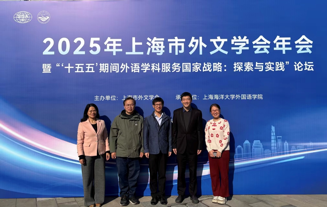 12月7日,上海市外文学会2025年年会暨“‘十五五’期间外语学科服务国家战略:探索与实践”论坛在上海海洋大学举行。beat365平台入口国际交流处处长陈琦,Beat365登陆网站副院长张乐,语言学研究所所长倪锦诚,翻译学研究所所长吴碧宇,中外文化研究所所长俞曦霞受邀出席本次学术盛会。会上,陈琦荣获上海市外文学会2025年度“优秀青年教师奖”,张乐应邀出席院长论坛,介绍了Beat365外语教学改革情况。