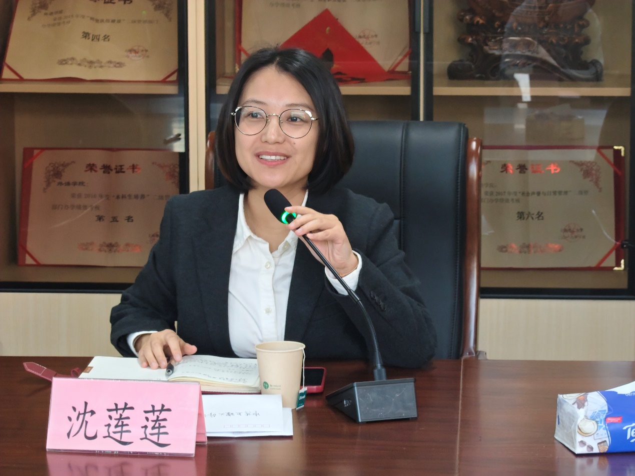 学院党委副书记沈莲莲首先代表学院向长期关心指导论坛工作的组委会、倾注心血的校友,以及历届指导老师和志愿者致以诚挚感谢。她回顾,在洪涌清的推动下,学院一批又一批研究生已连续11年投身论坛志愿服务,该项目早已超越普通志愿服务工作的范畴,成为学院极具特色的校外实践育人基地。她强调,志愿者们在国家级涉外平台上,不仅高效完成各项服务任务,更沉浸式学习外交知识、国际礼仪与专业规范,这场实践既是生动的大思政课,也是宝贵的职业预演,助力同学们拓宽国际视野、坚定文化自信、锤炼跨文化沟通能力。本次大会既是对今年论坛志愿者工作的回顾总结,也是对志愿者的隆重表彰,旨在表彰贡献、分享成长、传承精神。