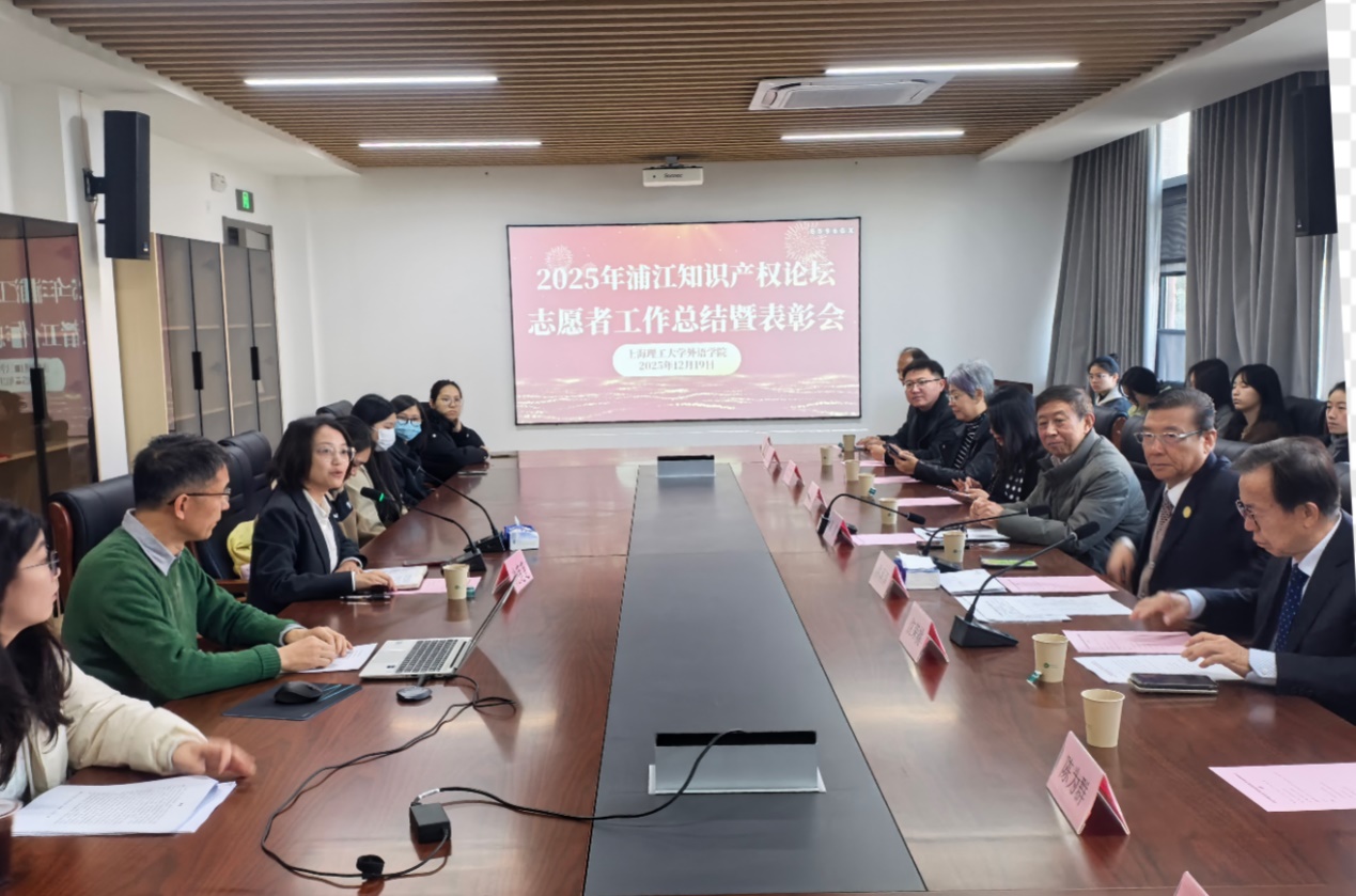 本次总结表彰会全面复盘2025年上海浦江知识产权国际论坛志愿工作,肯定论坛的国际影响力与志愿者的专业担当,明确志愿项目的实践育人价值,凝聚传承志愿精神的力量。